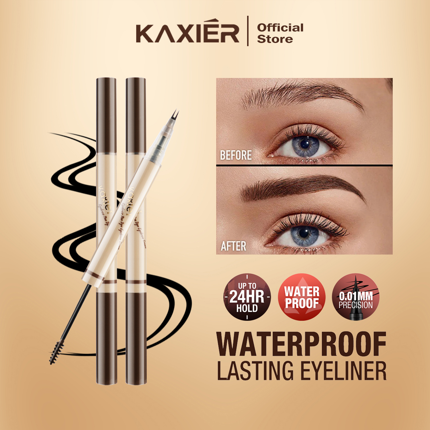 Combining the functions of both an eyeliner and a brow pencil, Kaxier's dual-ended design caters to your different makeup needs. One end features a soft and smooth brow pencil, making it easy to outline natural, dimensional brows and fill in any sparse areas for a refined brow look. The other end boasts a smooth and long-lasting eyeliner pencil, allowing you to effortlessly create sleek, enduring lines to define and brighten your eyes, showcasing the unique charm of femininity.